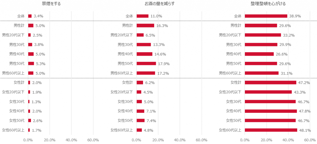 | 男性40代 | 転勤等で労働環境が変わったり、子供の就学が始まり生活リズムが変わった。 |